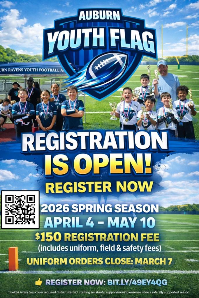 2026 AUBURN YOUTH FLAG FOOTBALL IS OPEN!